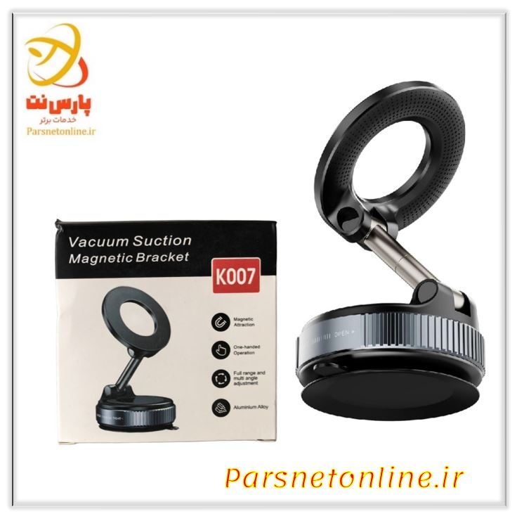 هولدر موبایل مکشی مگنتی مدل K007، همراهی ایدهآل برای تمام سفرها و مسیرهای روزمره شما! با قدرت چسبندگی بالا و مغناطیس قوی، گوشی شما همیشه در دسترس و ایمن خواهد بود. طراحی شیک و جمعوجور آن، به هر خودرویی زیبایی میبخشد. خریدی مطمئن برای راحتی و امنیت بیشتر! بهترین محل استفاده محصول برای کارایی بالا روی شیشه جلو ماشین می باشد.