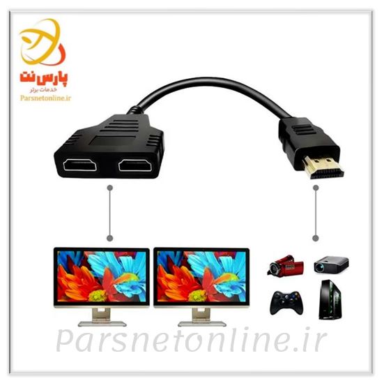 ین مبدل 1 پورت خروجی (HDMI) را به 2 پورت مادگی HDMI تبدیل می کند . (اسپلیتر HDMI کابلی 2 پورت)برای استفاده از این محصول شما نیاز به 2 کابل HDMI با متراژ مورد نظر خود دارید تا بتوانید به تلویزیون و مانیتور مورد نظر متصل شوید .