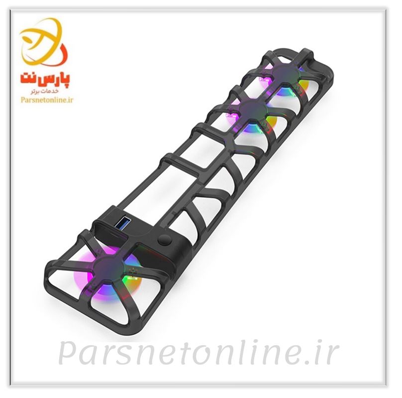 مجهز به سه عدد فن با عملکرد بی صدا و دارای نورپردازی LED RGB، رابط از نوع USB و دارای یک عدد درگاه USB3.0بدنه محصول ساخته شده از جنس پلاستیک ABS مقاوم در برابر آسیب های فیزیکی همچون ضربه و فشار