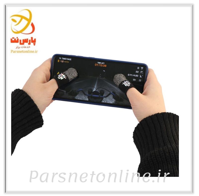 مناسب جهت حرکت راحت دست بر روی صفحه نمایش گوشی -دو عدد دستکش انگشتی ساخته شده از جنس پارچه باکیفیت و فایبر کربن و نقره